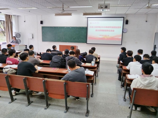 本网消息 为助考研学子明晰方向,精准填报研究生志愿,机电工程学院于10月17日在J2-107成功举办2026年研究生招生宣传暨志愿填报指导交流会,学院党总支书记杨菁、毕业班辅导员、班主任、2026届考研同学等100余人参加会议。