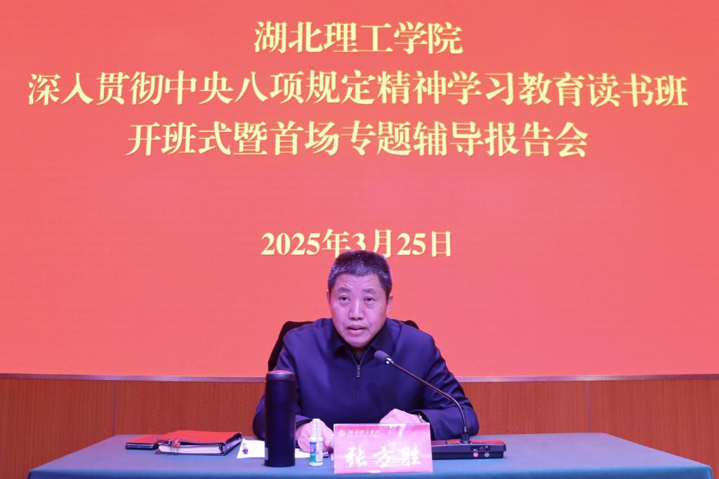 本网消息根据学习教育工作安排,从3月25日起,我校集中4天时间,举办深入贯彻中央八项规定精神学习教育读书班。25日上午,读书班开班动员暨首场专题辅导报告会在豁度楼208报告厅举行。校党委书记张方胜作开班动员并作专题辅导报告。党委副书记、校长李社教主持会议。全体校领导、全校中层副职及以上干部参加会议。