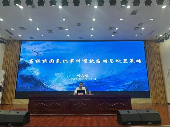 司文超以《高校校园危机事件有效应对与处置策略》为题,围绕“青年稳则国家稳,高校稳则社会稳”的理念,分析了高校安全稳定形势与学生工作难题,深入讲解危机发现、研判、处置及舆情应对要点,强调规律把握、调查研究等七项核心能力,为高校危机应对提供专业指引。