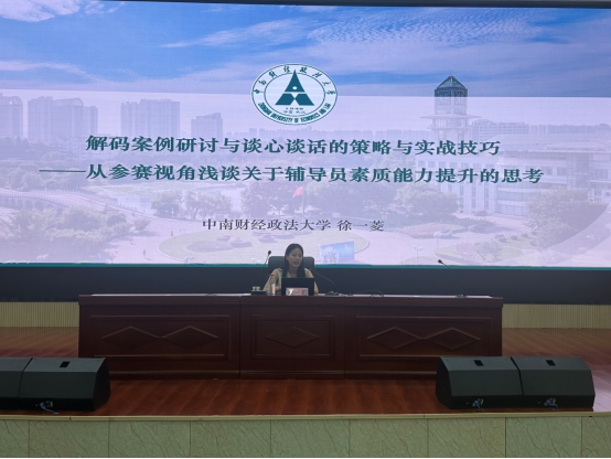徐一菱以《解码案例研讨与谈心谈话的策略与实战技巧》为题,结合自身经验,围绕案例研讨的要点、方法和技巧展开深入讲解,提出了许多针对性强、可操作的建议。她建议辅导员要善于将日常工作当做“练兵场”,注重日常积累,在实际工作中不断提升育人本领。