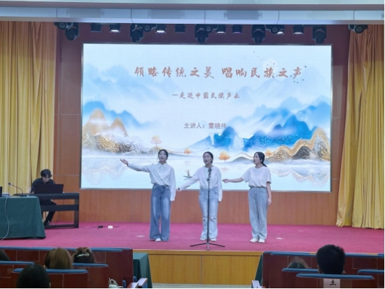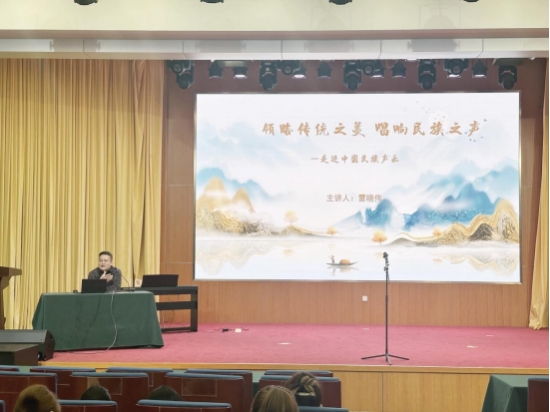 本网消息 11月11日下午,磁湖论坛第二十九讲:“领略传统之美 唱响民族之声——走进中国民族声乐”在豁度楼208报告厅举行。此次讲座由艺术学院副院长雷晓伟担任主讲人,艺术学院党总支副书记胡增裕主持,全校共350余名师生共同参加。