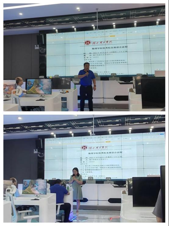 下午,校友座谈会在数字智能安全实训中心召开,会议由数理学院院长余宏生主持。校友办副主任陈晋首先发言,代表学校对2015届校友的返校表示热烈欢迎,对校友们长期以来对学校的关注与支持致以感谢。