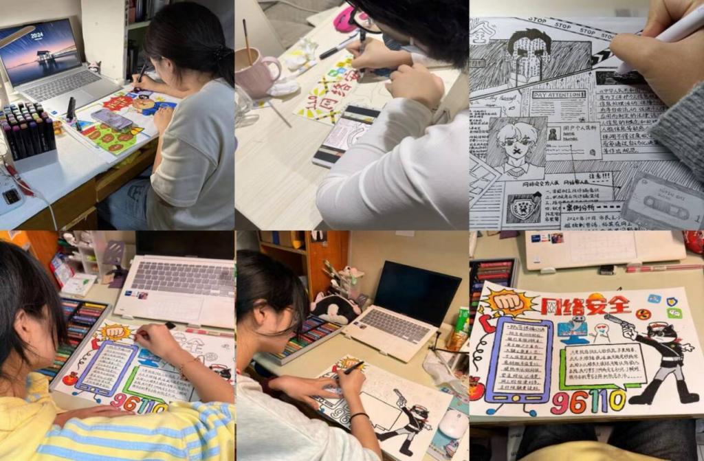 “网络安全”主题海报与手抄报征集活动,将防范诈骗等知识转化为生动的视觉创作。师范学子们以鲜明图案警示网络陷阱,用精炼文字普及安全法规,让抽象知识在色彩间具象绽放。活动突破传统宣传模式,以学生为主体、创意为纽带,有效推动网络安全意识入脑入心。