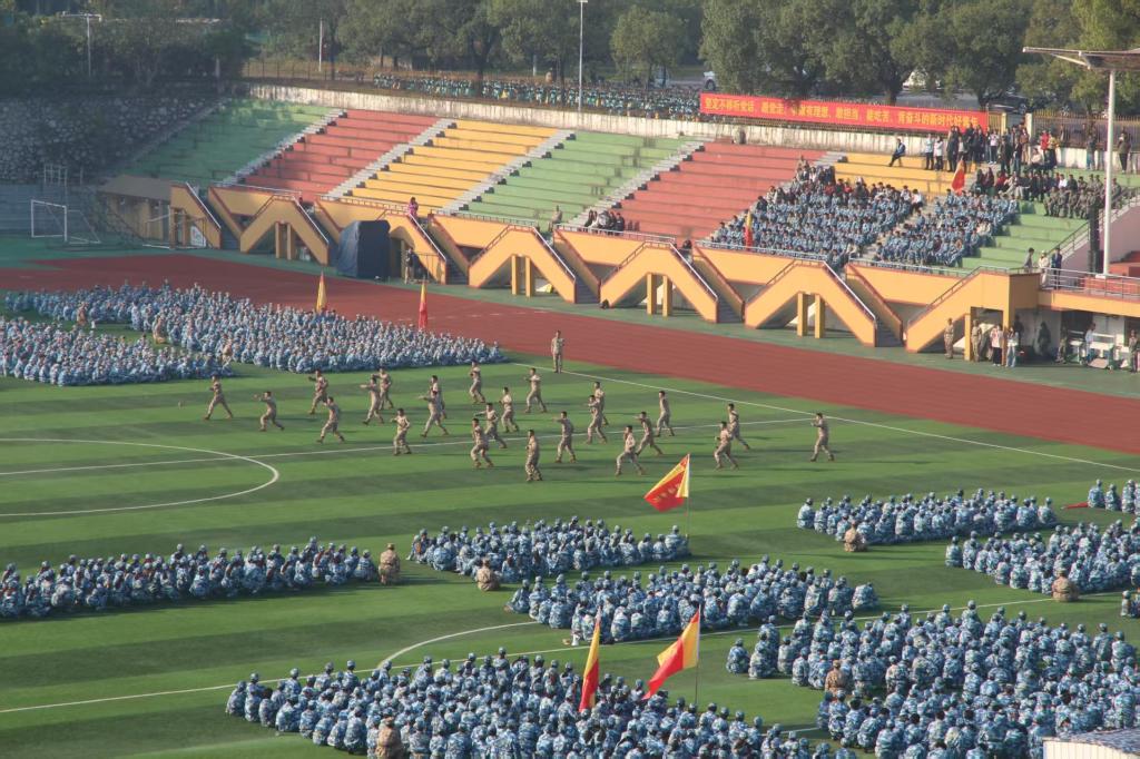 旭日东升,国歌嘹亮,2025级新生军训总结表彰大会在庄严气氛中隆重启幕。