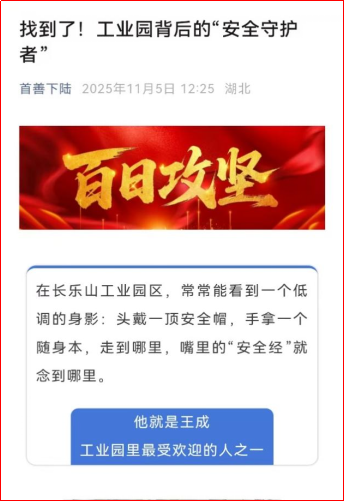 近期,多家媒体报道致公党湖北理工学院支部副主委王成服务地方企业发展的事迹,黄石日报以“专属安全守护者‘在线’”为题、公众号首善下陆以“找到了!工业园背后的‘安全守护者’”为题,推介了王成服务长乐山工业园区的事迹。