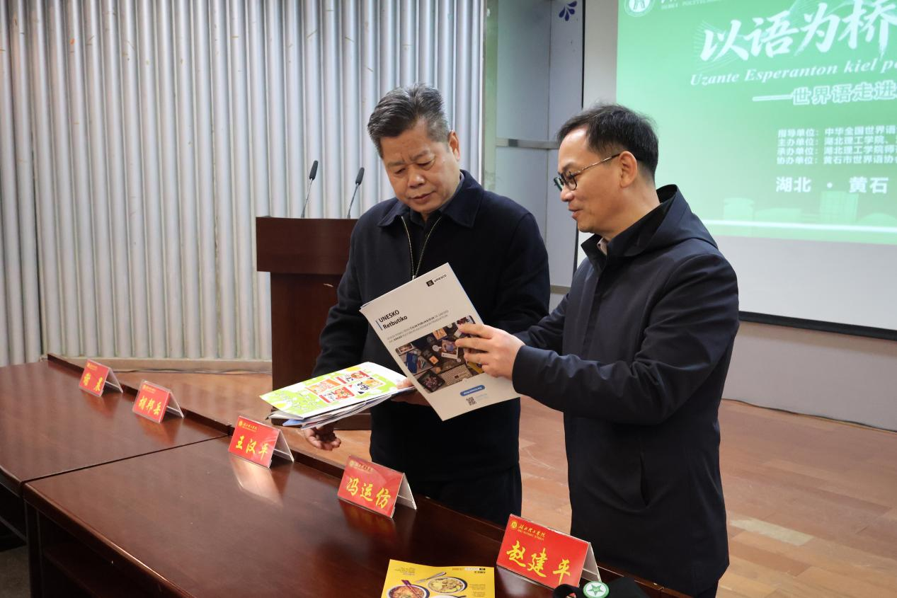 本网消息 12月12日上午,由湖北省世界语协会主办、师范学院和团委共同承办的“以语为桥 连通世界——世界语走进湖北理工学院主题宣讲活动”在T2报告厅顺利举行。湖北理工学院校党委副书记、副校长冯运仿出席活动,中国外文局亚太传播中心副主任、中华全国世界语协会副会长王汉平,原中央广播电视总台欧拉中心世界语部主任、首席播音员赵建平受邀作报告,师范学院院长胡邦岳主持活动。中华全国世界语协会常务理事、湖北省世界语协会会长胡凤声,湖北省世界语协会副秘书长詹琼,师范学院副院长谢晨、黄石市世界语协会代表及200余名师生参加活动。