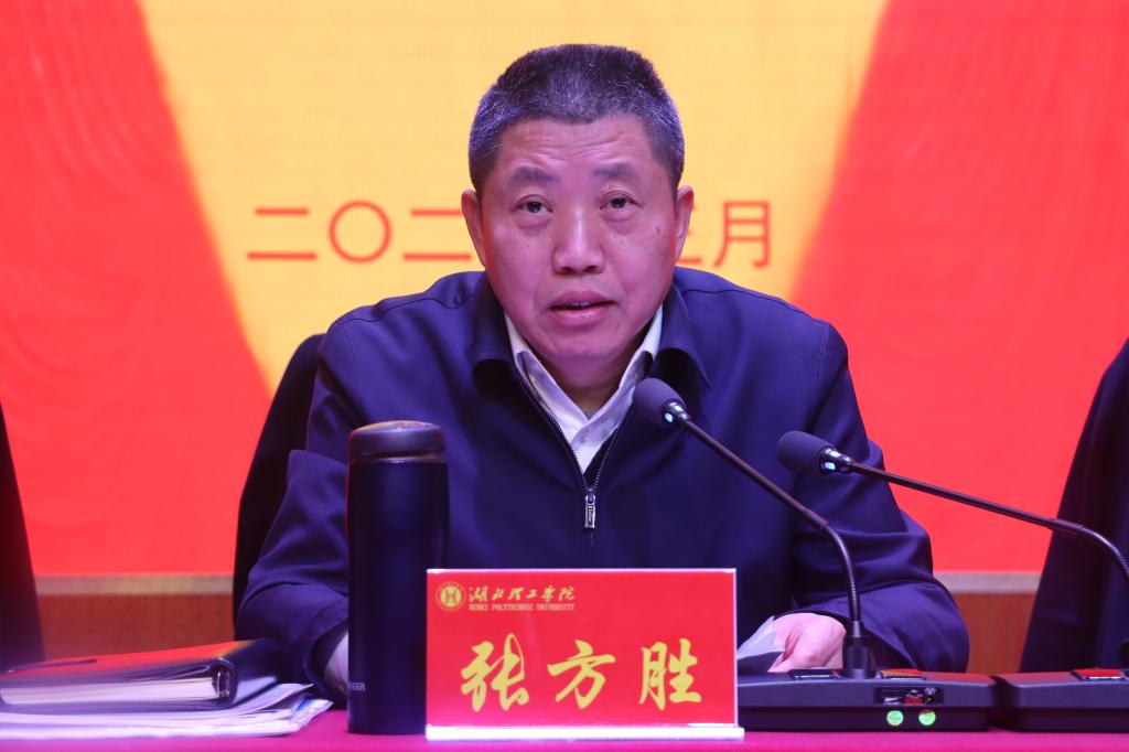 张方胜在闭幕式上发表讲话。张方胜说,本次教代会、工代会是一次团结的大会、民主的大会,更是一次催人奋进的大会。张方胜代表学校党委行政对会议的胜利召开表示热烈的祝贺,向为大会召开付出辛勤劳动的与会代表和工作人员致以崇高的敬意和衷心的感谢。张方胜指出,2026年是中国共产党成立105周年,是学校“十五五”开局起步之年,也是推动学校数智化转型、实现内涵建设再上新台阶的攻坚之年。站在学校高质量发展的关键节点上,每一位湖理人都要以思想之变引领行动之效,以作风之实筑牢发展之基,以能力之强护航事业之进。