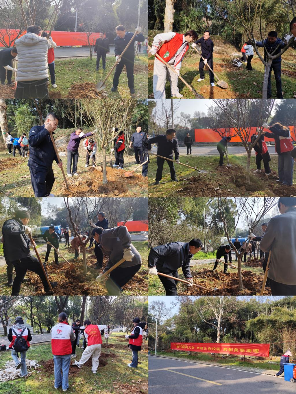 据了解,此次植树地点选在双镜湖边,不仅是对校园核心景观区的进一步美化,更是对去年植树活动的延续与拓展。去年,学校曾在毓成公寓种植梅花,形成了独特的早春赏梅景观。今年再次组织师生在湖畔植树,旨在通过持续的劳动实践,将绿色生态理念根植于师生心中,同时进一步打造“湖光花色”交相辉映的校园文化名片。