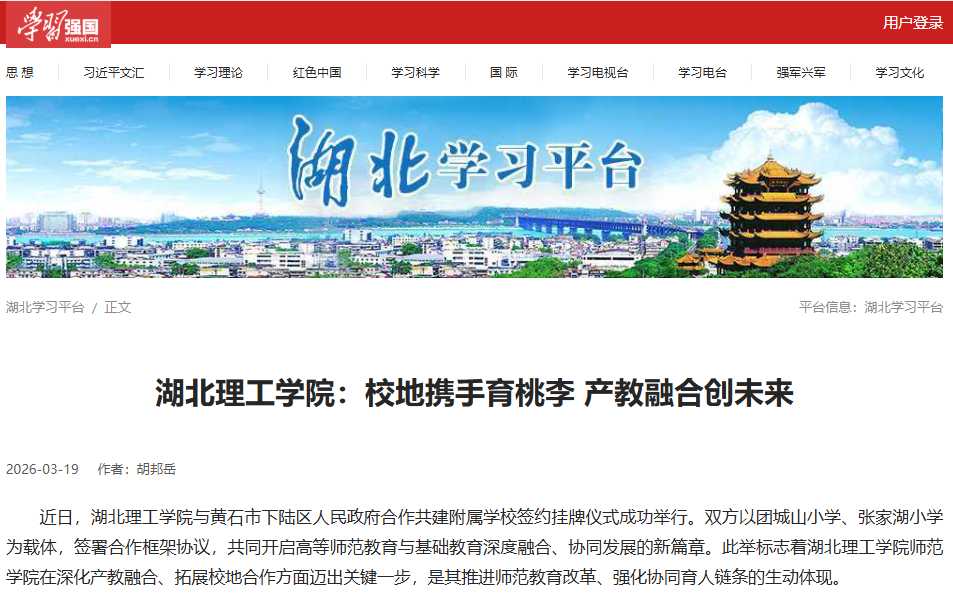学习强国湖北学习平台:湖北理工学院:校地携手育桃李 产教融合创未来