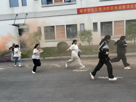 保卫处、学工部、土建学院、机电学院、新材料与绿色化工学院、环境学院、人工智能学院、医学院协同配合,毓贤学生公寓师生代表、宿舍管理人员、安保人员400余人参与活动,下陆消防救援大队提供专业支持。