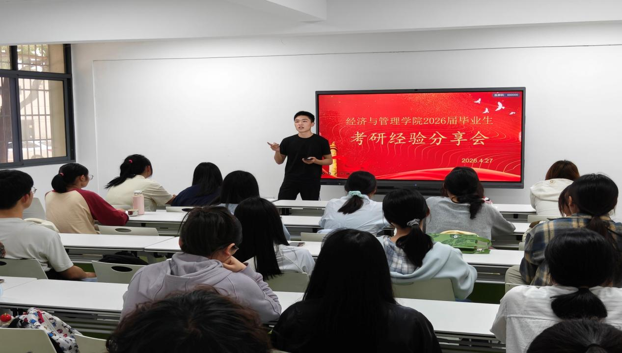 本网消息 4月27日,经济与管理学院举办考研经验分享会,邀请多位获得硕士研究生录取资格的学长学姐到场分享。本次活动为备考学子搭建了经验交流、互助共进的平台,吸引了众多有考研意向的同学参与。